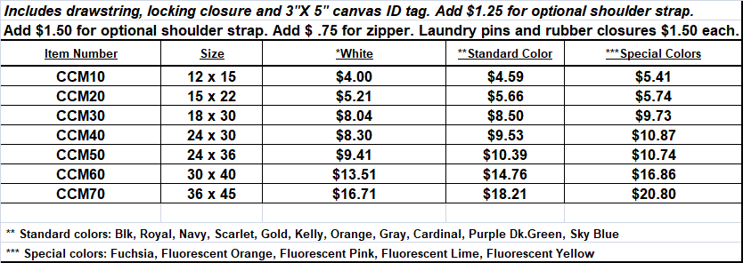 |  |  | WashPro 300 Bag Size: 12” x 15” Strap: Heavy Nylon 18” Fastener: Drawcord & Cordlock ID Patch: $5.45 each