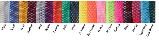 18 Colors: Brown, Gray, Royal, Black, Yellow (neon), Green, Navy, Red, Pink, Purple, White, Orange, Maroon, Sky Blue, Old Gold (dark beige), Turquoise, Athletic Gold |